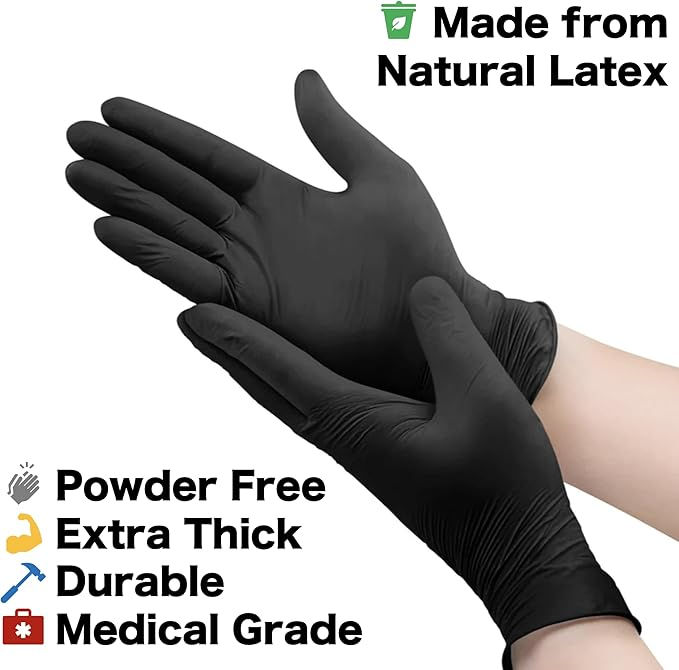 Illusionist Black Latex Disposable Multipurpose Gloves- Powder Free, Extra Thick